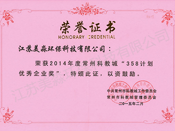 2014年度常州科教城358計劃優(yōu)秀企業(yè)獎