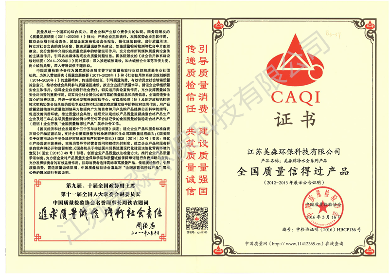 2017年全國產品和服務質量誠信示范企業-家用商用成套產品
