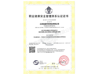 職業健康安全管理體系認證證書