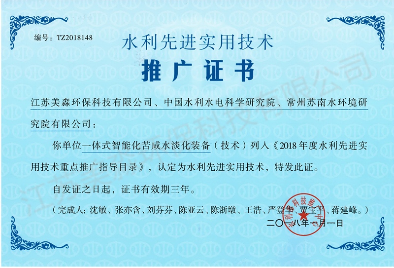 水利先進實用技術推廣證書