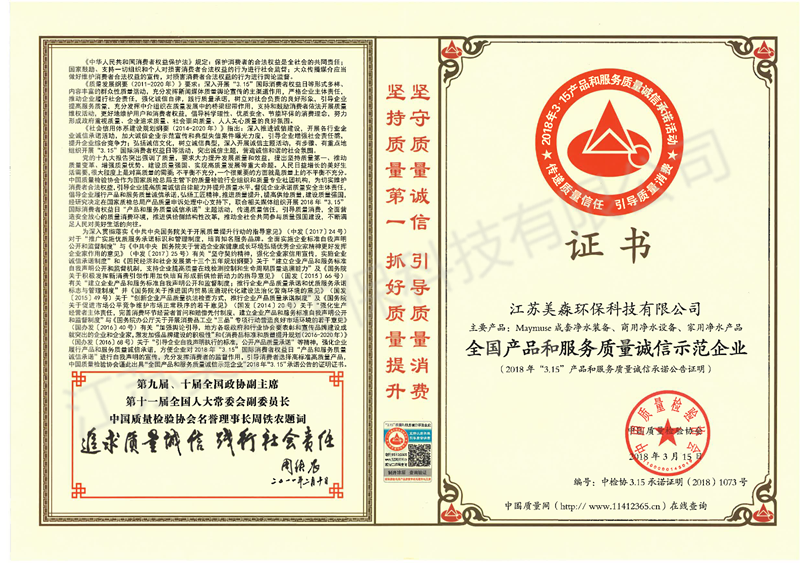 2018年-全國產品和服務質量誠信示范企業