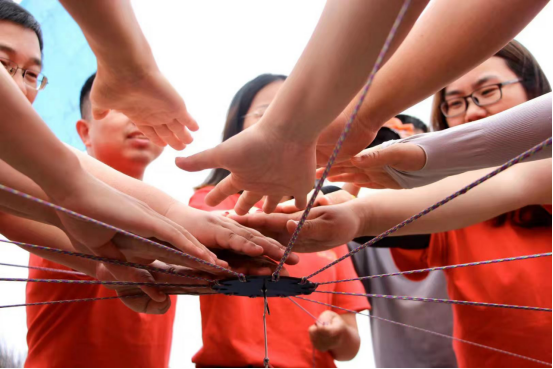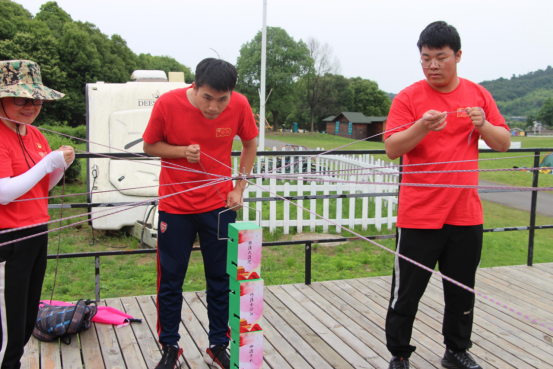 “勝利大會(huì)師”環(huán)節(jié),各隊(duì)員工每人通過一根細(xì)繩協(xié)力控制掛鉤,按照革命歷史事件先后順序逐個(gè)將積木搭建成塔,最終勝利會(huì)師。同樣值得一提的是,最后一隊(duì)在明知落后的情況下,堅(jiān)決不放棄,在一次次的失敗后最終取得成功,用行動(dòng)詮釋了何為“堅(jiān)持到底就是勝利”。